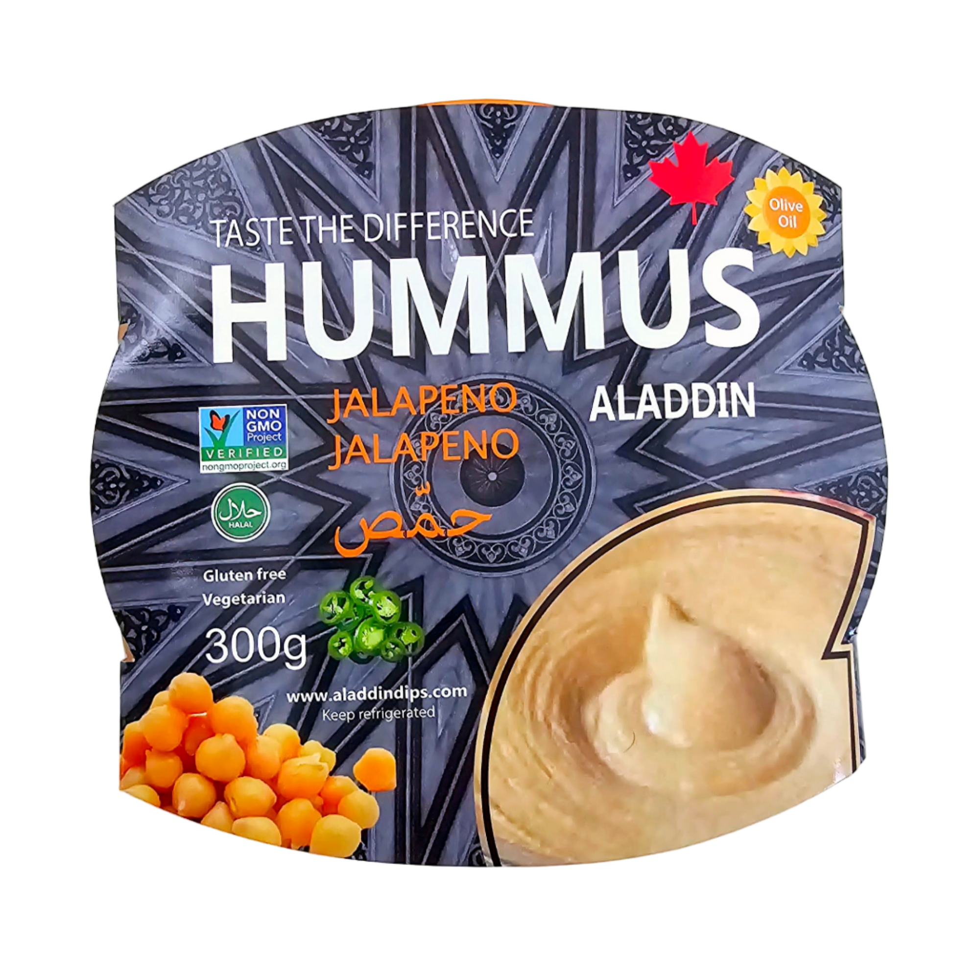 +14165219990Bring heat and flavor to any dish with our Jalapeño Hummus. Smooth, zesty, and deliciously spicy, it pairs perfectly with falafel, pita, shawarma, salads, and party appetizers. Available as a 12-pack of 300g containers—ideal for restaurants, stores, and catering events.