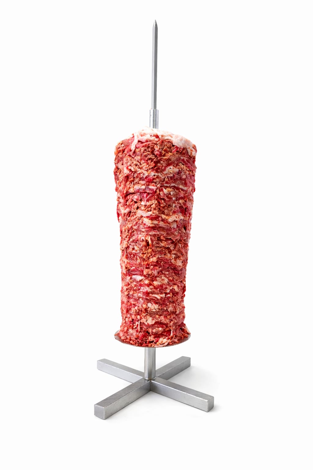 +14165219990Halal Beef shawarma is made of marinated boneless beef slices stacked into cones.